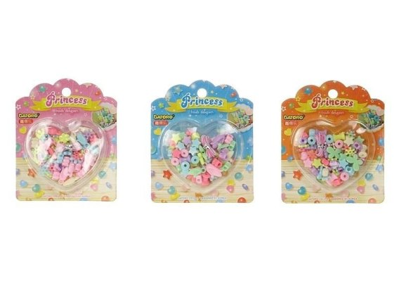 zestaw koralików do nawlekania, z linką, w ozdobnym pudełku; 13x11x1,5cm, B/C