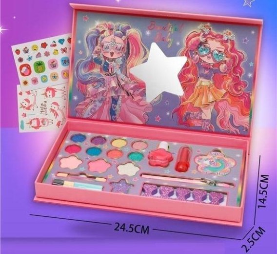 Rozbudź kreatywność swojej pociechy z zestawem do makijażu "Pretty Little Princess"! Ten uroczy zestaw w pastelowych barwach to idealny prezent dla każdej małej damy, która uwielbia eksperymentować z kolorami. W eleganckim pudełku znajdziesz bogactwo bezpiecznych dla skóry produktów, takich jak palety cieni do powiek w żywych odcieniach, różowe i fioletowe lakiery do paznokci, błyszczyki oraz praktyczne aplikatory. Dodatkowo w zestawie znajdują się urocze naklejki, które pozwolą na jeszcze więcej zabawy. Wszystkie kosmetyki są łatwo zmywalne, co zapewnia bezproblemowe czyszczenie po skończonej zabawie. Dzięki wymiarom 24.5 cm x 14.5 cm x 2.5 cm zestaw jest poręczny i idealny do zabrania w podróż. "Pretty Little Princess" to więcej niż makijaż - to inspiracja do twórczej ekspresji i rozwijania wyobraźni.