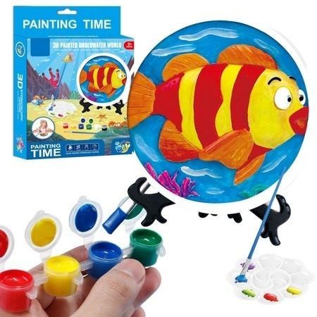 W zestawie znajduje się gipsowa podstawa z wzorem rybki na sztaludze. Akcesoria dołączone do zestawu pozwolą stworzyć prawdziwe dzieło sztuki.