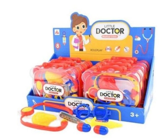 Zestaw Mały lekarz z tym zestawem każde dziecko może spełnić swoje marzenie, aby zostać lekarzem. Kto ma katar, kaszel lub temperaturę i musi udać się szybko do lekarza? Wystarczy sięgnąć do magicznej walizeczki, a znajdziemy tam wszystkie potrzebne rzeczy do wyleczenia najpoważniejszego przeziębienia.