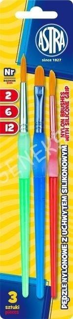 Zestaw pędzli nylonowych uchwyt silikon 3szt ASTRA