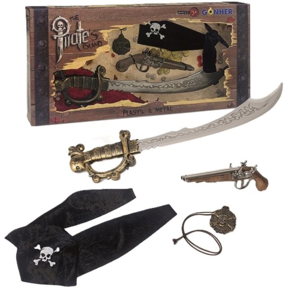 Zestaw zawiera: maczetę, pistolet pirata (nie strzela nabojami, wydaje jedynie dźwięk), hak oraz naszyjnik. Wiek: 3+. Szt./karton: 6