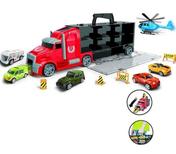 Każde auto posiada w walizce osobną przegrodę a kabina ciężarówki może służyć jako wygodny wyjazd by ruszyć do zabawy.