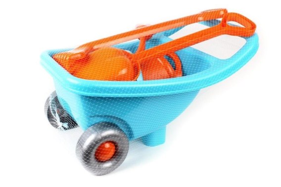 W zestawie taczka, konewka, wiadro, łopata i grabie. Opakowanie - siatka.