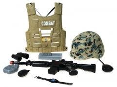 zestaw wojskowy z hełmem i kamizelką; 50x33x16cm, siatka