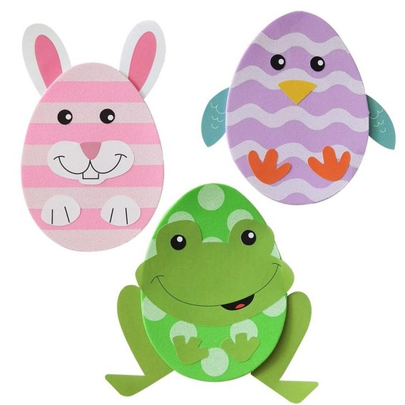 Zestaw kreatywny DIY do samodzielnego wykonania pisanek. Zabawne pisanki-zwierzątka. Idealne do wspólnej zabawy z dziećmi, rozwijania kreatywnego myślenia i precyzyjnego działania. W skład zestawu wchodzą: - 12 naklejek papierowych, - 3 piankowe jaja w rozmiarze 9 cm, - 3 wstążeczki do utworzenia zawieszek.