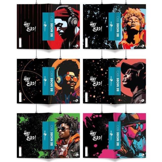 Kolekcja zeszytów Be More Bro wyróżnia się okładkami z nowoczesnym grafiką dla osób kreatywnych, w ciągłym ruchu i lubiących się wyróżnić. Zdjęcia pokryte są wybiórczo lakierem UV, co uwydatnia detale i nadaje głębi. Zeszyty posiadają kartki o wysokiej gramaturze z marginesami.