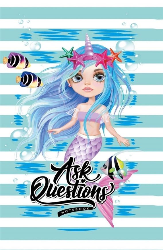 Ask Questions Notebook. Ozdobny zeszyt w twardej oprawie z brokatem. Jest to rodzaj pamiętnika typu "złote myśli", gdzie znajdują się miejsca na wpisy 23 dziewczynek (przyjaciółek/koleżanek właścicielki). Jednakże pierwszy wpis należy do posiadaczki zeszytu. Każdy z wpisów zawiera pytania dotyczące między innymi danych personalnych, szkoły, zainteresowań, czy też marzeń. Wpisy zakończone są kolorowankami. Doskonała pomoc w nauce języka angielskiego.
