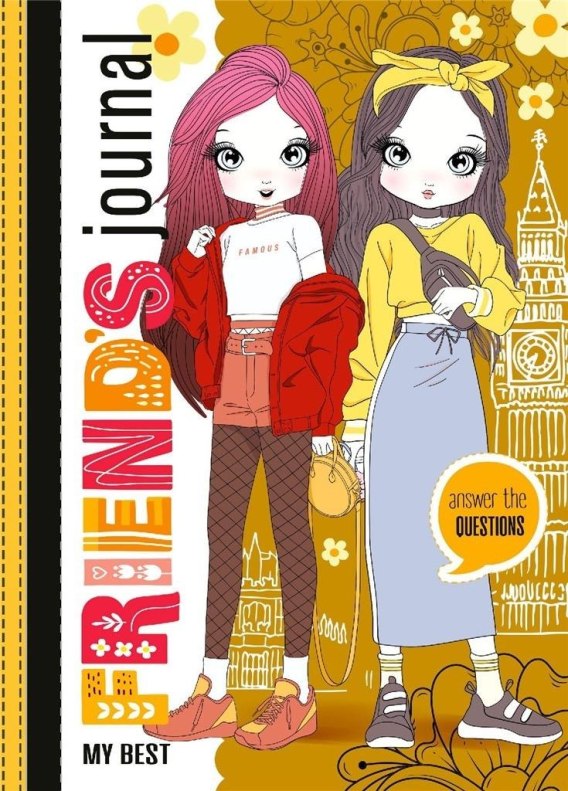 My Best Friend's journal - answer the questions. Ozdobny zeszyt w twardej oprawie z brokatem. Jest to rodzaj pamiętnika typu "złote myśli", gdzie znajdują się miejsca na wpisy 23 dziewczynek (przyjaciółek/koleżanek właścicielki). Jednakże pierwszy wpis należy do posiadaczki zeszytu. Każdy z wpisów zawiera pytania dotyczące między innymi danych personalnych, szkoły, zainteresowań, czy też marzeń. Wpisy zakończone są kolorowankami. Doskonała pomoc w nauce języka angielskiego.