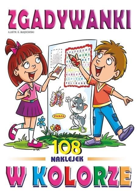 Książka edukacyjna z zadaniami logicznymi i naklejkami.