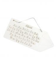 Prezentujemy drewniany alfabet do nauki pisania. Alfabet składa się tablicy na której wygrawerowane są wszystkie litery alfabetu (duże i małe).